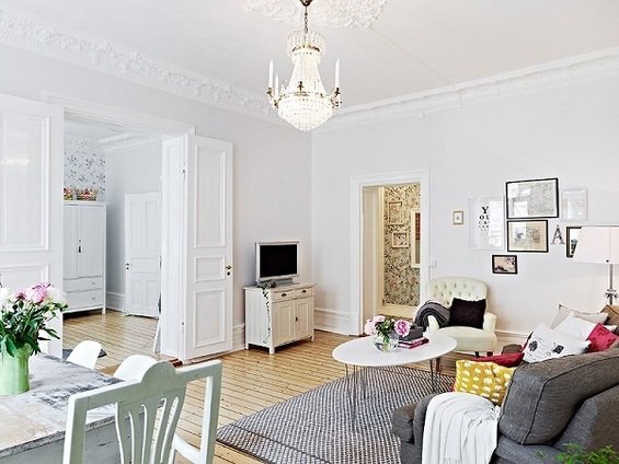 Фотография: Гостиная в стиле Скандинавский, Квартира, Швеция, Цвет в интерьере, Дома и квартиры, Белый – фото на INMYROOM