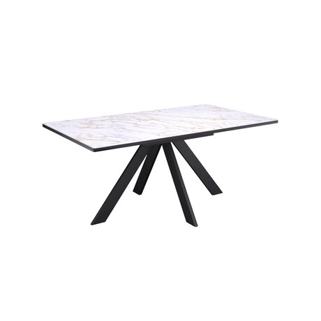 Стол идеально впишется в помещение площадью от 16 м². Нейтральное сочетание белой керамики с черным металлом дополнит как современную кухню, так и гостиную в скандинавском или минималистичном стиле. Прямоугольная форма размерами 160×80 см (в сложенном виде) позволяет разместить стол как у стены, так и в центре комнаты.Технические особенности