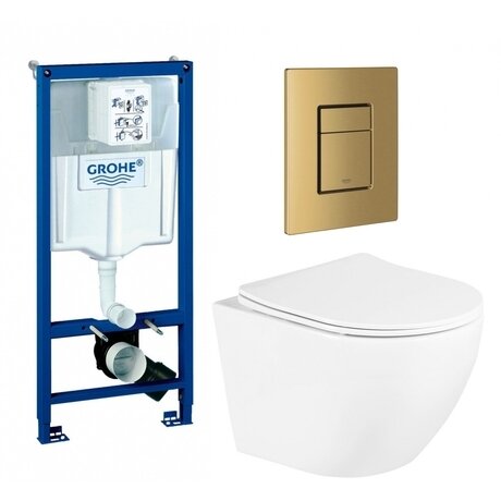 Хотите установить подвесной унитаз за один день? Комплект Grohe Rapid SL — это инсталляция, унитаз и золотая кнопка смыва в одной упаковке. Все детали совместимы, сборка занимает до 4 часов. Три главных преимущества: - Безободковая чаша — на 30% легче чистить, грязь не скапливается в труднодоступных местах - Каскадный слив — вода омывает всю поверхность чаши за один смыв - Сиденье с микролифтом — опускается плавно и бесшумно, не хлопает Комплект подходит для ванных комнат от 4 м². Габариты инсталляции: 113 × 50 × 48,2 см — встраивается в стандартную нишу глубиной от 12 см. Универсальное решение для квартир, загородных домов и офисов. Монтажная глубина — 23 см. Крепится в пол или к капитальной стене. Высота установки чаши — 32,3 см от пола — стандарт для взрослых. Технические характеристики: - Фаянсовая чаша — выдерживает нагрузку до 400 кг, не впитывает запахи - Дюропластовое сиденье — термостойкий пластик, не желтеет со временем - Быстросъемное сиденье — снимается одним движением для тщательной уборки - Система антивсплеск — конструкция чаши предотвращает брызги - Пневматическая кнопка из пластика — работает от давления воздуха, цвет золото - Подвод воды сбоку или сзади бачка — выбирайте удобный вариант подключения - Диаметр слива — 9 см, переходник — 11 см — подходит к стандартной канализации - Межосевое расстояние крепежных шпилек — 18 см Гарантия — 5 лет от производителя Grohe. Немецкое качество сборки, все элементы проходят заводское тестирование. Вес комплекта — 43 кг, доставляется в собранном виде — дополнительная сборка не требуется.Отзывы