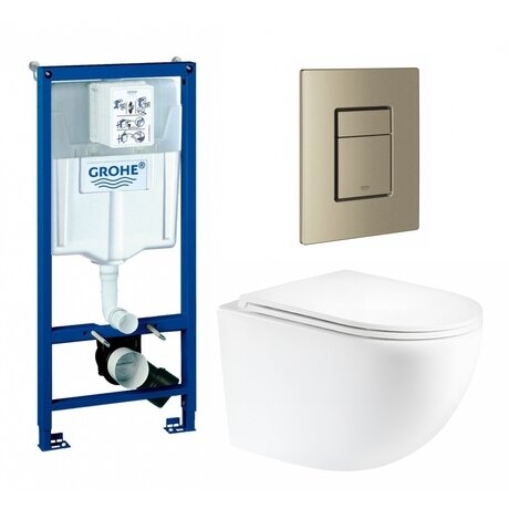 Планируете установить подвесной унитаз, но не хотите искать комплектующие по отдельности? Этот набор включает инсталляцию, чашу и кнопку смыва — всё необходимое для монтажа. Экономите время на подборе и получаете 5 лет гарантии от немецкого производителя Grohe. Три главных преимущества: - Безободковая чаша — нет труднодоступных мест для грязи, уборка занимает в 2 раза меньше времени - Сиденье с микролифтом — крышка опускается бесшумно и плавно, защищает от сколов - Система антивсплеск — продуманная геометрия чаши исключает брызги при смыве Подходит для санузлов от 2 м². Инсталляция крепится в капитальную стену или к полу — выбирайте удобный вариант для вашего помещения. Монтажная глубина 23 см позволяет установить конструкцию даже в узких нишах. Высота установки 113 см — стандарт для комфортного использования взрослыми и детьми от 10 лет. Технические характеристики: - Безободковая конструкция с душевым сливом — вода распределяется равномерно по всей поверхности, смывает загрязнения с первого раза - Антибактериальное покрытие — препятствует размножению бактерий на поверхности фарфора - Быстросъемное сиденье из дюропласта — снимается одним движением для тщательной уборки, не желтеет и не царапается - Пневматическая кнопка смыва — работает от нажатия воздуха, не требует электричества - Межосевое расстояние 18 см — стандартное крепление, подходит для любых крепежных шпилек - Подвод воды сбоку или сзади — адаптируется под существующую разводку труб Набор поставляется в собранном виде, вес 43 кг. В комплект входит кнопка смыва цвета никель — сочетается с современной сантехникой в хроме и матовых металлах.Отзывы