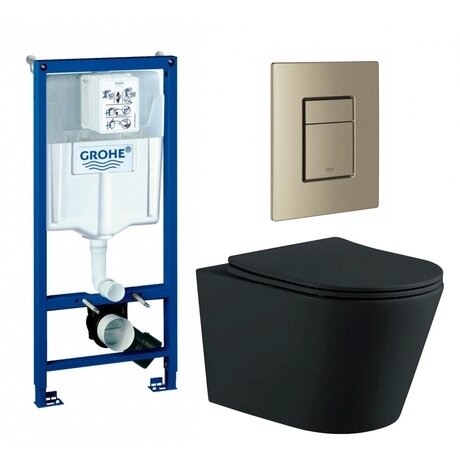 Нужен унитаз, который не займет место и легко монтируется? В комплекте уже есть всё необходимое: инсталляция Grohe Rapid SL, подвесная чаша и кнопка смыва цвета никель. Ставите один раз — пользуетесь годами с гарантией 5 лет от немецкого производителя. Три главных преимущества: - Безободковая чаша — чистится за 2 минуты влажной салфеткой, грязь не скапливается по краям - Сиденье с микролифтом из дюропласта — опускается бесшумно, не бьет по чаше, служит в 3 раза дольше обычного пластика - Пневматическая кнопка — работает от давления воздуха, не ломается от воды и конденсата Подходит для санузлов от 2 м². Инсталляция монтируется в пол и капитальную стену, занимает всего 23 см глубины внутри стены. После установки чаша висит на высоте 32 см от пола — удобно мыть под ней и регулировать высоту под свой рост. Горизонтальный выпуск подключается напрямую к канализации в стене. Подвод воды — сбоку или сзади бачка, выбираете при монтаже. Черная матовая чаша из фарфора — на ней не видны капли и разводы от воды. Размеры инсталляции: 113×50×52,5 см (высота, ширина, глубина). Диаметр слива — 9 см, переходник 11 см в комплекте. Межосевое расстояние под крепежные шпильки — 18 см. Вес комплекта — 43 кг. Не требует сборки — устанавливается сразу после доставки. Производство Германия, бренд Grohe с 90-летней историей.Отзывы