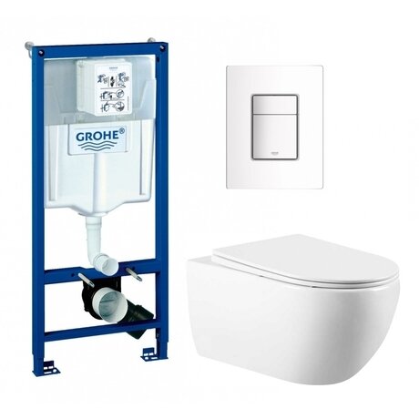 Ищете готовое решение для установки подвесного унитаза? Комплект Grohe включает инсталляцию, унитаз и кнопку смыва — монтируете за один заход без дополнительных покупок. Экономите время на подборе совместимых элементов и получаете 5 лет гарантии от немецкого производителя. Три главных преимущества: - Безободковая чаша с душевым сливом — вода омывает всю поверхность, не оставляя налета в труднодоступных местах - Система «старт-стоп» — останавливаете слив в любой момент, расходуете ровно столько воды, сколько нужно - Сиденье с микролифтом — опускается плавно и бесшумно, не будит домашних ночью Комплект подходит для ванной от 4 м². Инсталляция монтируется в стену глубиной от 23 см — скрываете бачок и коммуникации за фальшстеной. Унитаз выступает всего на 55,5 см от стены, оставляя больше свободного пространства, чем напольные модели. Решение для тех, кто делает ремонт в городской квартире, загородном доме или коммерческом помещении. Подходит семьям с детьми — сиденье быстросъемное, снимаете одним движением для генеральной уборки. Материал чаши — санфарфор, выдерживает механические нагрузки и не впитывает загрязнения. Сиденье из дюропласта — не желтеет со временем, устойчиво к бытовой химии и царапинам. Система антивсплеск — специальная геометрия чаши предотвращает брызги при смыве. Двухрежимная кнопка — 3 литра для малого слива, 6 литров для полного, или останавливаете поток вручную функцией «старт-стоп». Универсальный монтаж — крепите инсталляцию к капитальной стене или в пол. Подводите воду сбоку или сзади бачка — выбираете удобный вариант под вашу разводку. Вес комплекта 43 кг — привезете на легковом автомобиле без аренды грузовика.Отзывы