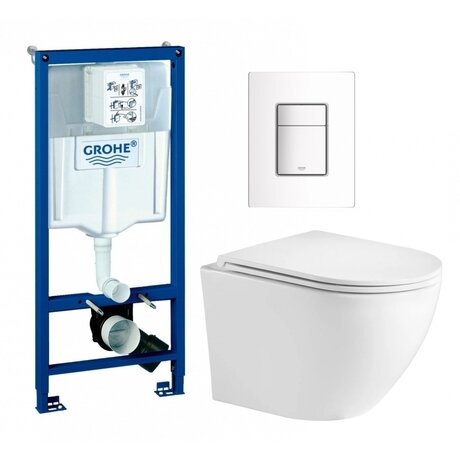 Ищете компактный унитаз, который экономит место и легко чистится? Подвесной комплект от Grohe занимает на **23 см меньше площади**, чем напольные модели, и не имеет ободка — главного сборника бактерий. Три главных преимущества: - Безободковая чаша — убирается за 2 минуты без труднодоступных мест - Система «старт-стоп» — экономит до 6 000 литров воды в год на семью из трех человек - Антивсплеск — специальная геометрия чаши исключает брызги Комплект подходит для санузлов от 3 м². Инсталляция прячется в стену на глубину всего 23 см — можно установить даже в хрущевке. Белая керамика сочетается с любым кафелем, а лаконичная кнопка смыва не перетягивает внимание. Материал чаши — немецкий фаянс с антигрязевым покрытием. Капли воды скатываются, не оставляя известковых разводов. Сиденье из дюропласта не желтеет и выдерживает нагрузку до 150 кг. Микролифт опускает крышку бесшумно — не разбудит домашних ночью. Душевой слив распределяет воду по всей поверхности чаши — смывает с первого раза даже при экономном режиме 3 литра. Полный слив использует 6 литров — в два раза меньше стандартных бачков. Монтаж: крепится к капитальной стене и полу. Подвод воды — сбоку или сзади бачка. Высота установки кнопки — 113 см, подходит для людей ростом от 160 см. Быстросъемное сиденье снимается одним движением для генеральной уборки. Гарантия 5 лет от производителя — немецкая компания Grohe отвечает за механизм слива и раму. В комплекте всё необходимое: инсталляция, унитаз, сиденье и кнопка смыва. Докупать ничего не придется.Отзывы