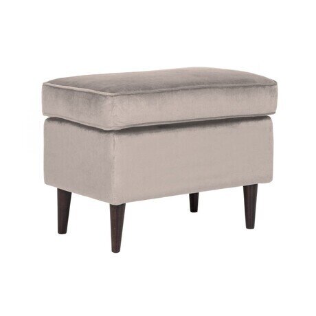 Велюровая обивка бежевого цвета — чистится влажной салфеткой за 2 минуты, не впитывает пыль Низкая посадка на деревянных ножках — высота позволяет задвигать пуф под стол или использовать как подставку для ног Не требует сборки — достали из коробки и сразу используетеКак использовать: