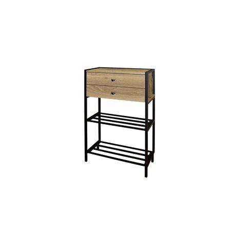 Нужно компактное хранение для обуви и мелочей в небольшой прихожей? Обувница решает обе задачи: 2 выдвижных ящика для щёток и кремов сверху, 2 открытые металлические полки для обуви снизу. Занимает минимум места и вентилирует обувь.