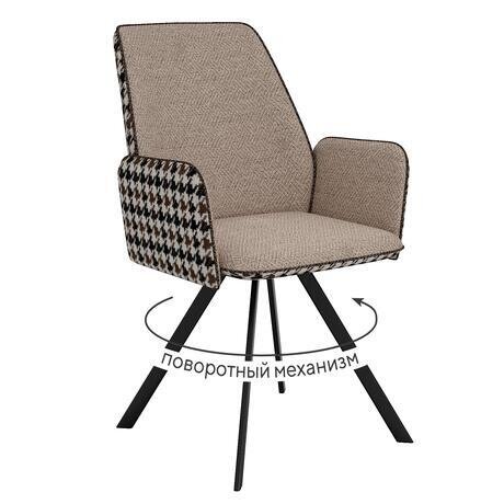 Нужен стул, который не придется двигать, чтобы развернуться к столу? DikLine 293 поворачивается на 360 градусов — сидите в любую сторону без лишних движений. Плюс выдерживает до 120 кг благодаря металлическому каркасу с порошковым покрытием. Три главных преимущества: - Поворотный механизм — разворачиваетесь к столу или собеседнику одним движением - Комбинированная обивка — бежевый велюр на спинке и сиденье, принт "гусиная лапка" на подлокотниках - Удобная посадка — высота сиденья 46 см подходит к стандартным столам 75 см Стул впишется в кухню от 8 м² или гостиную от 12 м². Габариты 52×60 см, высота 91 см — не занимает много места, но обеспечивает комфортную посадку. Подойдет для квартир-студий, где один стул используется и у обеденного стола, и как кресло в гостиной зоне. Материал обивки — микровелюр. Чистится влажной салфеткой, не выгорает на солнце и не покрывается катышками даже при ежедневном использовании. Металлические ножки с черным порошковым покрытием устойчивы к царапинам. Конструкция: - Сиденье — фанера 15 мм с мягким наполнителем, размер 46×44 см - Спинка — 44×44 см, высота от сиденья 44 см - Подлокотники — высота 19 см от сиденья, общая высота с полом 66 см - Опоры — 4 металлические ножки с поворотным механизмом Требуется сборка — присоединить ножки к сиденью. Вес 10 кг — один человек перенесет стул между комнатами. Гарантия 12 месяцев от российского производителя.Отзывы