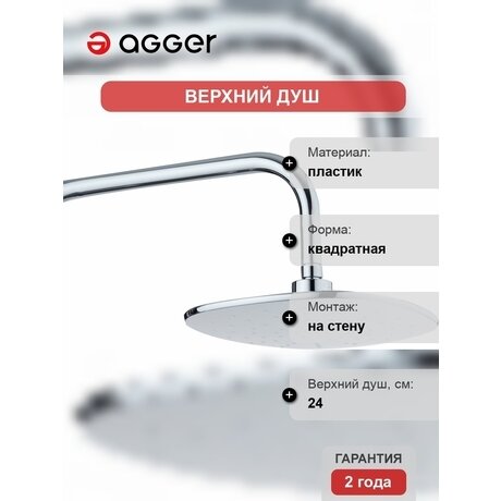 Хотите превратить обычный душ в домашний спа? Верхний душ Marine создает мягкий тропический дождь благодаря площади рассеивания 576 см² (24×24 см). Немецкое качество Agger с гарантией 5 лет. Три главных преимущества: - Квадратная форма 24×24 см — равномерное распределение воды по всему телу, без «мертвых зон» - Защита от известкового налета — силиконовые форсунки легко очищаются рукой, лейка не забивается - Экономия до 30% воды — встроенная система аэрации делает струю объемной при меньшем расходе Для ванных комнат от 4 м². Монтируется на стену на высоте 200–220 см. Подходит для городских квартир с центральным водоснабжением и загородных домов с проточным водонагревателем. Стандартное подключение 1/2 дюйма — совместимо со всеми смесителями. Технические характеристики: - Пластик с хромированным покрытием — не ржавеет, весит всего 450 грамм, безопасен при случайном ударе - Один режим струи Rain — имитирует естественный дождь без переключателей и сложных настроек - Глянцевая поверхность — легко чистится обычной губкой, отталкивает брызги и потеки - Глубина монтажа 3 см — не выступает далеко от стены, экономит пространство в компактных ванных Установка: не требует сборки, монтируется за 15 минут на стандартный душевой кронштейн. Совместим с проточными водонагревателями — не создает избыточного давления.Отзывы