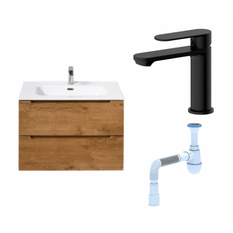Нужна компактная мебель для ванной, которую не придется собирать? Комплект Etna поставляется готовым к установке — достаточно закрепить на стене за 15 минут. В набор входит всё необходимое: тумба, раковина, смеситель и сифон. Три главных преимущества: - Подвесная конструкция — освобождает пол для уборки, можно мыть шваброй под тумбой - Доводчики ящиков — закрываются бесшумно даже при легком толчке, не будят домашних ранним утром - Полная комплектация — не нужно отдельно покупать смеситель и сифон, всё подобрано по стилю Подходит для ванных комнат от 4 м². Ширина комплекта — 71,5 см, примерно как две открытые дверцы шкафа. Глубина 46 см позволяет разместить тумбу даже в узком помещении — останется минимум 40 см для прохода. Материалы и покрытие: корпус и фасады из МДФ с матовой пленкой rovere nature — имитация светлого дерева. Поверхность устойчива к влаге и брызгам, протирается обычной тряпкой. Фарфоровая раковина не впитывает загрязнения и не меняет цвет со временем. Система хранения: два выдвижных ящика вмещают фен, косметику, полотенца и бытовую химию. Механизм доводчика продлевает срок службы фурнитуры — ящики не расшатываются от резкого закрывания. Смеситель в комплекте: матовый черный смеситель высотой 15,2 см с длиной излива 12,3 см — под струей удобно мыть руки и умываться. Высота излива 10,4 см — достаточно для наполнения стакана или бутылки. Технические характеристики: - Вес 40,5 кг — требуется крепление к капитальной стене, гипсокартон не подходит - Раковина с одним отверстием — под установленный смеситель, менять на другой не потребуется - Гарантия 2 года — производитель уверен в качестве итальянской разработки - Сборка не требуется — экономия времени и денег на услугах мастера Для кого подходит: владельцам компактных ванных в квартирах-студиях, однушках и двушках. Тем, кто ценит готовые решения и не хочет тратить время на подбор сантехники. Любителям современного стиля с элементами дерева.Отзывы
