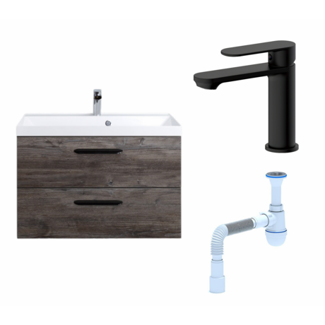 Нужна компактная мебель для небольшой ванной? Комплект Aurora занимает всего 80×45 см и включает всё необходимое — тумбу, раковину, смеситель и сифон. Монтируется за час без специальных навыков. Три главных преимущества: - Готовый комплект — не нужно подбирать смеситель и сифон отдельно - Два выдвижных ящика с доводчиками — закрываются плавно и бесшумно - Подвесной монтаж — пол под тумбой свободен, легко мыть Комплект подойдет для ванной от 4,5 м². Габариты 80 см в ширину, 45 см в глубину, 55 см в высоту — оптимально для установки в типовых квартирах и маленьких санузлах. Подходит для одного-двух человек. Фасад под темное дерево (Pino Pasadena) — матовая поверхность не оставляет отпечатков пальцев. Цвет не выгорает от влажности. Белая раковина из искусственного камня не желтеет и легко чистится обычными моющими средствами. Технические характеристики: - Два выдвижных ящика — вмещают полотенца, косметику и бытовую химию - Механизм доводчика — ящики закрываются от легкого толчка, служат дольше обычных направляющих - Черный смеситель высотой 15,2 см — не царапается, легко отмывается от известкового налета - Излив 12,3 см — удобно мыть руки и умываться, не задевая стену - Корпус из ДСП с матовым ламинатом — выдерживает влажность ванной комнаты - Подвесная конструкция — крепится к стене, экономит место и упрощает уборку В комплекте: крепления для монтажа, сифон и смеситель. Сборка не требуется — тумба поставляется готовой. Гарантия 2 года на всю конструкцию. Не подходит для установки над стиральной машиной. Раковина с одним отверстием под смеситель — замена на другую модель невозможна.Отзывы