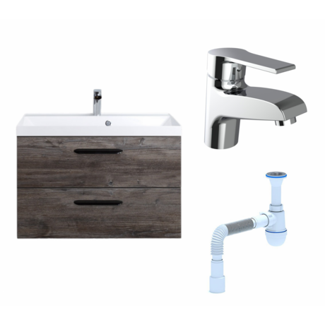 Ищете готовое решение для компактной ванной? Комплект Aurora включает тумбу, раковину, смеситель и сифон — установите за один день и получите 48 кг надежной конструкции с плавным закрыванием ящиков. Три причины выбрать Aurora: - Готовый комплект — не нужно подбирать смеситель и сифон отдельно, всё совместимо - Доводчики в двух ящиках — закрываются бесшумно даже при сильном толчке - Искусственный камень раковины — не впитывает грязь и не желтеет от жесткой воды Подходит для ванных от 3,5 м². Габариты тумбы: 80 см в ширину, 45 см в глубину, 55 см в высоту. Подвесная конструкция освобождает пол — удобно мыть и визуально расширяет пространство. Для пар и семей, которым нужно два вместительных ящика для косметики, полотенец и бытовой химии. Темное дерево Pino Pasadena сочетается с белой, серой и черной плиткой. Материалы и конструкция: - Корпус и фасады из ДСП — выдерживают влажность ванной комнаты, покрыты водостойким ламинатом - Раковина из искусственного камня — чистится обычными моющими средствами, не царапается губкой - Хромированный смеситель — высота излива 7,2 см, длина 12,2 см, удобно умываться и мыть руки - Механизм доводчика — плавно закрывает ящики последние 5 см хода - Подвесной монтаж — крепления входят в комплект, выдерживают до 100 кг Комплектация: - Тумба с двумя ящиками - Раковина с одним отверстием под смеситель - Смеситель (габариты: 16,1 × 3,5 × 13,7 см) - Сифон для подключения к канализации - Крепления для подвесного монтажа - Гарантия 2 года от производителя Особенности эксплуатации: Матовое покрытие не оставляет отпечатков пальцев. Протирайте тумбу влажной тряпкой — ламинат не боится брызг. Раковину мойте любым средством для сантехники. Сборка не требуется — тумба поставляется в собранном виде. Установка на стену занимает 1-2 часа с учетом подключения смесителя и сифона.Отзывы