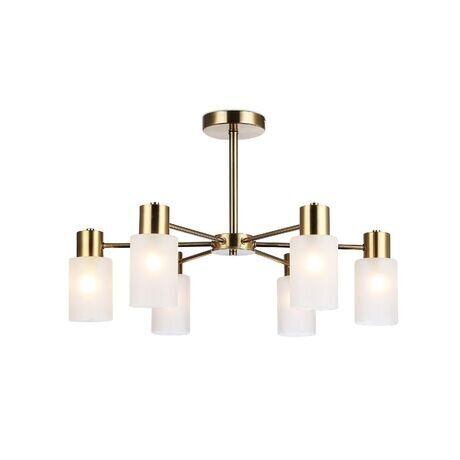 Нужна яркая люстра для просторной комнаты? Эта модель освещает до 20 м² — подойдет для гостиной, столовой или кабинета. Шесть плафонов дают равномерный мягкий свет без резких теней. Три главных преимущества: - Мощность 240 Вт — заменяет верхний свет и точечные светильники одновременно - Латунная арматура — не тускнеет со временем, сохраняет блеск без полировки - Матовое белое стекло — рассеивает свет и скрывает лампы от глаз Люстра подходит для комнат от 16 м² с потолками от 2.7 м. Габариты: высота 38.5 см, диаметр 62 см — визуально не перегружает пространство. Лаконичный дизайн сочетается со скандинавским, современным и минималистичным интерьером. Рассчитана на аудиторию, которая ценит практичность: молодые семьи, владельцы квартир-студий, любители светлых интерьеров. Технические характеристики: - 6 ламп E14 — стандартный цоколь, лампы продаются в любом магазине - Цилиндрические плафоны из стекла — протираются влажной тряпкой раз в месяц - Металлическая арматура цвета латуни — устойчива к коррозии во влажных помещениях - Крепление на монтажную пластину — установка занимает 20 минут, инструкция в комплекте - Напряжение 220 В — работает от обычной сети без трансформатора - Степень защиты IP20 — только для сухих помещений, не для ванной Требуется сборка: нужно прикрутить плафоны к арматуре и закрепить на потолке. Гарантия 24 месяца.Отзывы