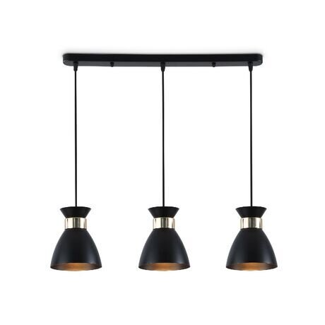 Ищете светильник над столом на кухню? Три черных плафона с медным отражателем внутри дают 180 Вт света — достаточно для освещения 6 квадратных метров. Плюс создают акцент в интерьере благодаря контрасту черного металла снаружи и теплого золотистого внутри. Три главных преимущества: - Направленный свет — конусные плафоны освещают конкретную зону, не создавая бликов в глазах - Регулируемая высота — подвесы до 1000 мм позволяют настроить светильник под высоту потолка - Легкий монтаж — крепится на стандартную монтажную пластину, собирается за 15 минут Светильник подходит для кухонь от 8 м², где нужно осветить обеденную зону или барную стойку. Ширина планки 135 мм — компактно смотрится даже в небольших помещениях. Идеален для скандинавских и лофт-интерьеров, где ценят сочетание функциональности и лаконичного дизайна. Технические характеристики: - 3 плафона E27 — используйте обычные лампы накаливания или светодиодные с теплым светом 2700К для уютной атмосферы - Металлический корпус — не выгорает и легко чистится влажной тряпкой - IP20 — защита от пыли, подходит для сухих помещений - Напряжение 220В — подключается к стандартной сети без трансформаторов - Вес 1,5 кг — выдержит любой потолок, включая гипсокартонный Требуется сборка: соединить плафоны с планкой и отрегулировать длину подвесов. В комплекте вся необходимая фурнитура. Гарантия 24 месяца от производителя Ambrella Light.Отзывы