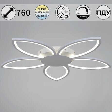 Нужна люстра в спальню или гостиную, которую не придется обслуживать годами? Потолочная люстра Reluce со встроенными LED-лампами дает 130 Вт светового потока — достаточно для комнаты до 24 м². Диммируется пультом, а лепестки из белого металла создают мягкое рассеянное освещение без резких теней. Три главных преимущества: - Встроенные LED-лампы — не нужно покупать и менять, работают до 50 000 часов - Диаметр 760 мм — оптимально для комнат 15–24 м², не выглядит громоздко - Высота всего 50 мм — подходит для низких потолков от 2,4 м Люстра создана для современных интерьеров в скандинавском или минималистичном стиле. Пять металлических лепестков в форме цветка крепятся на потолок монтажной пластиной — установка занимает 15–20 минут. Нейтральный белый цвет сочетается с любой отделкой стен. Материал: металлический корпус и плафоны — протирать сухой тканью раз в месяц, не требует специального ухода. IP20 — для сухих помещений (спальня, гостиная, кабинет). Не подходит для ванной комнаты. Напряжение 220 В — подключается напрямую к сети, без трансформаторов. Вес 1,9 кг — крепится к бетонному или деревянному потолку стандартными дюбелями из комплекта. Гарантия производителя — 24 месяца. Итальянский бренд Reluce специализируется на LED-светильниках с 2008 года.Отзывы