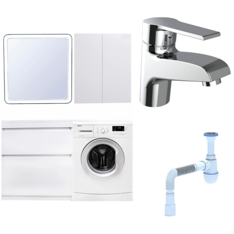 - Тумба с 2 ящиками — система хранения вместо открытых полок, вещи не пылятся - Раковина с одним отверстием под смеситель — уже врезана в столешницу - Зеркало с LED-подсветкой — яркость достаточна для макияжа и бритья - Смеситель с коротким изливом — длина 12 см, вода льется точно в центр раковины - Сифон для подключения к канализацииТехнические характеристики