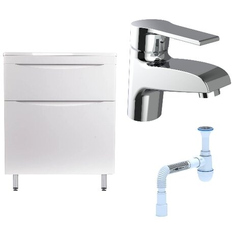 Нужен готовый комплект для небольшой ванной? Тумба «Бергамо» с раковиной и смесителем занимает всего 69 × 34,6 см — поместится даже в санузел от 3,5 м². В комплекте всё необходимое: мебель, сантехника и смеситель с донным клапаном. Три причины выбрать этот комплект: - Тихое закрывание — доводчики на ящиках гасят удар, даже если захлопнуть с силой - Устойчивая раковина — искусственный мрамор не трескается от падения флакона, в отличие от керамики - Компактный смеситель — излив 12,2 см не выступает за край раковины, экономит место Подходит для узких санузлов в хрущёвках и студиях. Глубина 34,6 см позволяет открывать ящики, даже если до противоположной стены меньше метра. Высота 83 см — стандарт для комфортного использования взрослыми. Раковина из литьевого мрамора — смесь каменной крошки и полимеров. Не желтеет со временем, легко отмывается от известкового налёта обычным средством для ванн. Белая матовая поверхность скрывает мелкие царапины и капли воды. Два выдвижных ящика вмещают фен, косметику и средства для уборки. Внутри МДФ с влагостойким покрытием — можно хранить влажные тряпки без риска разбухания. Фасады покрыты пленкой, которая не отслаивается от пара. Смеситель однорычажный — регулируешь напор и температуру одной рукой. Высота 13,7 см даёт место, чтобы подставить ковш или набрать воду в бутылку объёмом до 1 литра. Хромированная поверхность не оставляет отпечатков пальцев. Технические характеристики: - Напольный монтаж — не нужно сверлить стену, установка за 20 минут - Вес 50,4 кг — стоит устойчиво, не качается при открывании ящиков - Гарантия 1 год — производитель Style Line компенсирует заводской брак - Доставка в собранном виде — распаковал, подключил к водопроводу и канализации Комплект для тех, кто ценит готовые решения. Не нужно подбирать смеситель к раковине и искать подходящую тумбу — всё совместимо и сочетается по стилю.Отзывы