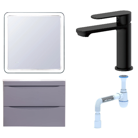 Нужно собрать ванную комнату с нуля? В комплект «Бергамо» входит всё необходимое: тумба с раковиной, зеркало с подсветкой и часами, чёрный смеситель и сифон. Ставите в санузел от 4 м² — получаете готовое решение в современном стиле. Три главных преимущества: - Подвесная конструкция — пол под тумбой остаётся свободным, удобно мыть и визуально расширяет пространство - Два ящика с доводчиками — закрываются бесшумно даже при резком толчке, механизм выдерживает 50 000 циклов - Зеркало со встроенными часами — не нужно вешать отдельные, светодиодная подсветка мощностью 60 Вт заменяет верхний свет Комплект подходит для семьи из 2–3 человек в квартире или загородном доме. Тумба 70×50 см вмещает шампуни, полотенца и бытовую химию. Раковина из искусственного мрамора не впитывает грязь — протирайте мягкой губкой раз в неделю. Технические характеристики: - Габариты тумбы: 69×34,6×50 см — помещается в стандартный санузел, глубина 34,6 см экономит место перед раковиной - Смеситель с изливом 12,3 см — комфортная высота для мытья рук и умывания, чёрное матовое покрытие не показывает следов от воды - Корпус из МДФ с плёночным покрытием — выдерживает влажность до 80%, серый матовый цвет не выцветает - Раковина с одним отверстием под смеситель — подходит стандартный смеситель, установка за 15 минут - Сенсорный выключатель на зеркале — включаете подсветку касанием, не нужно искать кнопку Сборка не требуется — приезжает готовый комплект, остаётся закрепить на стене. Вес 50,4 кг — справятся два человека без строительных навыков. Гарантия 1 год на все элементы комплекта.Отзывы