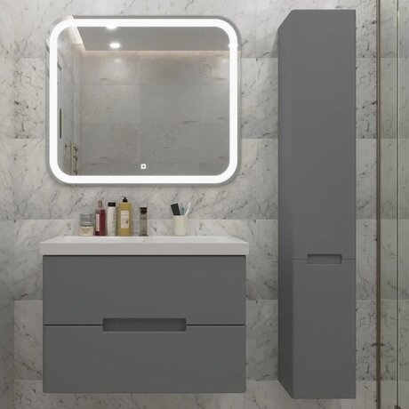 Ищете комплект мебели для ванной площадью от 3 м²? Noche от Sanstar занимает всего 77 × 44 см у стены и дает полноценную систему хранения с двумя выдвижными ящиками. В комплекте — тумба с раковиной, зеркало с подсветкой и узкий пенал. Три главных преимущества: - Подвесная конструкция — пол остается свободным, проще убирать - Мягкое закрывание ящиков — доводчики защищают фасады от ударов и продлевают срок службы - Встроенная LED-подсветка в зеркале — равномерный свет без теней на лице Подходит для ванных комнат от 3 м². Высота тумбы 54 см — стандарт для комфортного умывания. Ширина 76,5 см позволяет разместить все необходимое и оставить место для стиральной машины или корзины для белья. Для кого: владельцы квартир-студий и однушек, семьи с детьми, арендодатели — всем, кому нужна практичная мебель без лишнего декора. Характеристики: - МДФ с матовой пленкой графитового цвета — не остаются отпечатки пальцев, легко протирать - Фарфоровая раковина — не впитывает загрязнения, служит 15+ лет - Два выдвижных ящика — отдельно для косметики и бытовой химии - Узкий пенал в комплекте — дополнительное место для полотенец и запасов - Вес 25,4 кг — можно установить на гипсокартонную стену с усилением Готова к использованию: приходит собранной, нужно только закрепить на стене и подключить раковину. Установка занимает 1-2 часа. Матовое покрытие не требует специального ухода — достаточно влажной тряпки. Гарантия 3 года от производителя Sanstar. Сделано в России.Отзывы