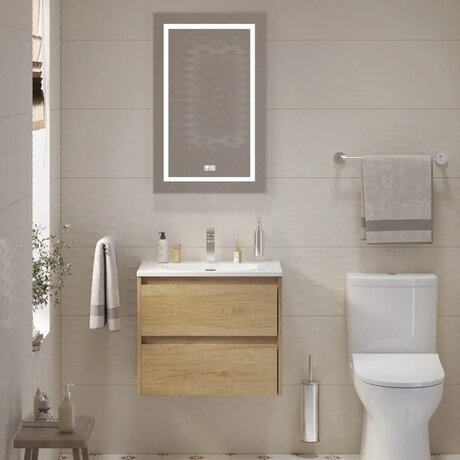 Как уместить функциональную систему хранения в ванной площадью 3-4 м²? Подвесная мебель Kraft от итальянского бренда BelBagno занимает всего 70×39 см — освобождает пол для уборки и визуально расширяет пространство. В двух выдвижных ящиках с доводчиками поместятся полотенца, косметика и бытовая химия. Три причины выбрать эту модель: - Тихое закрывание — механизм доводчика гасит удар, ящики закрываются плавно даже при резком толчке - Встроенный органайзер — разделители внутри ящиков не дают мелочам перемешиваться - Светлое дерево — цвет rovere nebrasca nature сочетается с белой сантехникой и серой плиткой Гарнитур подходит для санузлов от 3 м². Высота 50 см оптимальна для семей с детьми — ребенок дотянется до раковины со ступеньки. Подвесной монтаж упрощает влажную уборку — швабра проходит под тумбой без препятствий. Фаянсовая раковина — не впитывает грязь, отмывается обычным моющим средством без абразивов. Матовое покрытие фасадов из ламинированного ЛДСП не показывает отпечатки пальцев и брызги воды. Корпус из ЛДСП — выдерживает влажность ванной комнаты при наличии вентиляции. Вес 20 кг — монтируется на несущую стену из бетона или кирпича, требуется два человека для установки. Поставляется в собранном виде — достаточно закрепить на стене и подключить раковину к водопроводу. Гарантия производителя — 1 год. В комплекте крепеж для подвесного монтажа.Отзывы