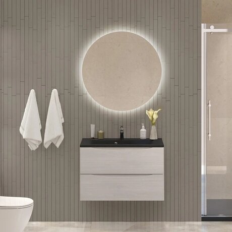 Нужна тумба для небольшой ванной, которая не займет много места? Marino от BelBagno — это 79,6 см в ширину и 44,8 см в глубину, что позволяет разместить её даже в помещении от 3 м². При этом внутри — два вместительных ящика для полотенец и косметики. Три главных преимущества: - Механизм доводчика — ящики закрываются плавно и бесшумно, даже если толкнуть их резко - Черная раковина из искусственного камня — не желтеет со временем, царапины удаляются обычной губкой - Подвесной монтаж — освобождает пол для уборки и визуально увеличивает пространство Тумба подходит для ванных от 3 м². Габариты: 79,6 × 44,8 × 50 см (ширина, глубина, высота). Идеальна для городских квартир, где на счету каждый сантиметр. Корпус в оттенке rovere grigio (светло-серое дерево) сочетается с белой плиткой и темными акцентами. Технические характеристики: - Корпус и фасад из МДФ — не разбухает от влаги, служит до 15 лет - Матовое покрытие — на нём не видны следы от пальцев и капель воды - Раковина из искусственного камня — выдерживает удары и не впитывает красители - Два выдвижных ящика — вмещают фены, косметику и бытовую химию - Вес 24 кг — монтируется на стену с усиленным креплением Гарантия 2 года от итальянского производителя BelBagno. Поставляется в собранном виде — достаточно закрепить на стене и подключить раковину.Отзывы