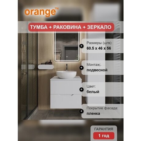 Нужна функциональная мебель в ванную площадью от 3 м²? Комплект Line занимает 60,5 × 46 см — помещается даже в узкий санузел в хрущевке. В комплекте тумба с двумя выдвижными ящиками, фарфоровая раковина и зеркало со встроенной подсветкой. Три главных преимущества: — Подвесной монтаж — пол под тумбой остается свободным, легко мыть и визуально больше пространства — Доводчики на ящиках — закрываются плавно и бесшумно, даже если резко толкнуть — Нажимной механизм открывания — не нужны ручки, достаточно легкого нажатия Подходит для ванных от 3 м². Габариты с учетом выступающей раковины — 60,5 см в ширину, 46 см в глубину, 56 см в высоту. Идеально для малогабаритных квартир, студий и вторых санузлов. Белый матовый цвет сочетается с любой плиткой и сантехникой. Материалы и конструкция: Корпус и фасады из МДФ — устойчивы к влажности и перепадам температуры. Покрытие пленкой выдерживает ежедневную эксплуатацию и контакт с водой. Фарфоровая раковина — не впитывает грязь, легко отмывается обычными средствами. Форма без острых углов. Два выдвижных ящика — поместятся полотенца, косметика и бытовая химия. Глубина ящиков позволяет хранить высокие флаконы стоя. Готовое решение без сборки — тумба приходит собранной, нужно только закрепить на стене. Вес конструкции 22,7 кг. Для монтажа понадобятся дюбели для бетона или кирпича — в комплект не входят. Особенность: в столешнице нет отверстий под смеситель. Раковина рассчитана на настенный смеситель — докупается отдельно. Такое решение упрощает уборку — нет стыков вокруг основания крана. Гарантия 1 год на механизмы и покрытие.Отзывы