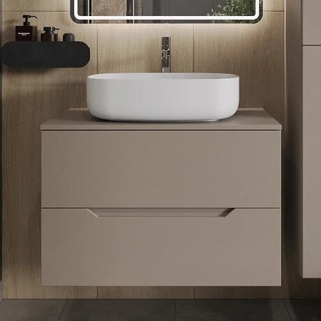 Нужна компактная мебель для небольшой ванной? Тумба Line шириной 80 см умещается даже в помещении 4 м². Подвесная конструкция визуально увеличивает пространство и упрощает уборку — швабра проходит под мебелью без препятствий. Три главных преимущества: - Бесшумное закрывание — доводчики плавно закрывают ящики, даже если их захлопнуть - Открывание нажатием — не нужны ручки, достаточно легко нажать на фасад - Накладная раковина-чаша — столешница остается сухой, вода не затекает в стыки Тумба подходит для семей с детьми — острые углы отсутствуют, ящики закрываются плавно и не прищемят пальцы. Матовое покрытие цвета латте сочетается с белой сантехникой и деревянными элементами в скандинавских и современных интерьерах. Габариты: ширина 80 см, глубина 46 см, высота 71 см — стандартная высота рабочей поверхности, удобная для умывания. Два выдвижных ящика вмещают косметику, полотенца и бытовую химию. Технические характеристики: - Фарфоровая раковина — не впитывает грязь и легко чистится обычным моющим средством - МДФ с пленочным покрытием — выдерживает влажность и перепады температуры в ванной - Подвесной монтаж — крепится к стене, освобождает пол для уборки - Без отверстий под смеситель — можете выбрать настенный или встраиваемый смеситель любой конфигурации - Вес 27 кг — требуется надежное крепление к капитальной стене Поставляется в собранном виде — достаточно закрепить на стене. Гарантия производителя 1 год.Отзывы