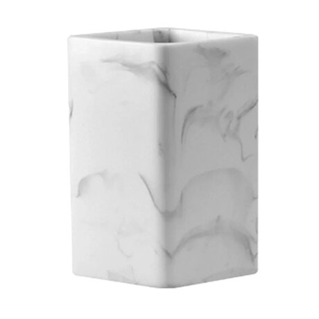 Нужен стакан для зубных щеток, который впишется в любой интерьер? Wasserkraft Ems из полирезина выглядит как настоящий мрамор, но весит всего 200 граммов и не разобьется при падении. Три главных преимущества: - Имитация камня — белый рисунок с серыми прожилками копирует натуральный мрамор - Полирезин вместо керамики — не трескается от удара и не скользит на влажной поверхности - Компактный размер — 6,3 × 6,3 см в основании, поместится даже на узкой полке Подойдет для ванных комнат от 3 м². Прямоугольная форма экономит место на столешнице — можно поставить вплотную к стене или в угол. Матовая поверхность не оставляет следов от брызг и пальцев. Размеры: 6,3 см в ширину, 6,3 см в глубину, 10,7 см в высоту. Вмещает 2-3 зубные щетки или косметические кисти. Настольный монтаж — просто поставить, никаких креплений. Материал — полирезин — это композитный материал на основе смолы. Плюсы: легче керамики в 2 раза, не впитывает воду, легко моется обычным средством для посуды. Современный стиль — сочетается с хромированными смесителями и минималистичной сантехникой. Белый цвет с серым рисунком подходит к плитке любого оттенка. Производитель Wasserkraft (Германия) дает гарантию 2 года. Сборка не требуется — достаете из коробки и сразу используете. Для кого: владельцы небольших ванных комнат, поклонники скандинавского стиля, те, кто ищет практичную альтернативу керамике.Отзывы