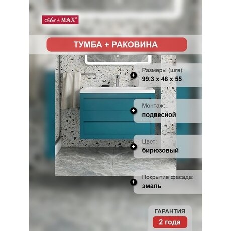 Название: | Тумба с раковиной Artamp;Max Platino 100 подвесная, бирюзовая матовая |