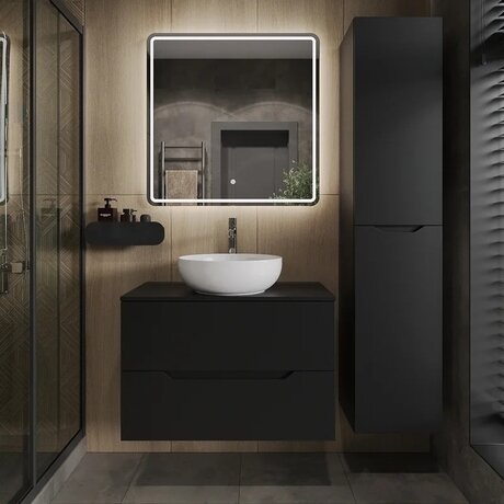Нужна компактная мебель для небольшой ванной? Подвесная тумба Line займет всего 81 см по ширине и освободит пол для уборки. В комплекте — белая фарфоровая раковина-чаша и зеркало с LED-подсветкой. Три главных преимущества: - Подвесная конструкция — визуально увеличивает пространство и упрощает уборку под тумбой - Два выдвижных ящика с доводчиками — закрываются бесшумно, не хлопают даже при резком толчке - Нажимное открывание — не нужны ручки, достаточно легкого нажатия на фасад Подходит для ванной комнаты от 4 кв.м. Габариты тумбы: 81×46×54 см — поместится даже в узкую нишу между душевой кабиной и стиральной машиной. Черный матовый корпус сочетается с любой плиткой и сантехникой. Материалы и конструкция: Корпус и фасады из МДФ — устойчивы к влаге, не деформируются от пара. Матовое покрытие не оставляет отпечатков пальцев и легко протирается микрофиброй. Фарфоровая раковина-чаша — не впитывает грязь и не желтеет со временем. Белая глянцевая поверхность чистится обычным средством для посуды. Механизмы доводчиков — выдерживают до 50 000 циклов открывания. Гарантия производителя — 1 год. Что учесть при установке: - Отверстия под смеситель нужно делать самостоятельно или заказать на столешнице - Требуется настенный или встраиваемый смеситель - Монтаж подвесной — понадобятся анкеры для крепления к стене - Вес 27,2 кг — устанавливают два человека Для кого подойдет: владельцы малогабаритных ванных, кто ценит минимализм и не любит открытые полки с банками и тюбиками на виду.Отзывы
