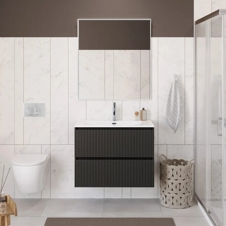 Нужна функциональная мебель для ванной площадью от 3 м²? Подвесная тумба Uno-mini от BelBagno занимает всего 90×39,5 см и освобождает пол для уборки. Два выдвижных ящика с доводчиком закрываются бесшумно — достаточно легкого толчка. Три главных преимущества: - Компактность — глубина 39,5 см экономит место в узких санузлах - Практичность — подвесная конструкция упрощает влажную уборку и визуально расширяет пространство - Бесшумность — механизм доводчика закрывает ящики плавно, без хлопков Подходит для ванных комнат от 3 м². Габариты с раковиной: ширина 90 см, глубина 39,5 см, высота 60,8 см. Рассчитана на молодые семьи и владельцев малогабаритных квартир, где важен каждый сантиметр. Материалы: корпус из ЛДСП с влагостойким покрытием, фасады из МДФ с матовой эмалью темно-серого цвета. Раковина из фаянса — классический материал, который не впитывает загрязнения и легко моется обычными средствами. Конструкция: - Подвесной монтаж — крепится к стене, пол остается свободным для швабры и робота-пылесоса - Два ящика — верхний для косметики и аксессуаров, нижний для полотенец и бытовой химии - Механизм доводчика — ящики закрываются плавно при легком касании, фурнитура не изнашивается от ударов - Матовое покрытие — на темно-сером фасаде не видны отпечатки пальцев и капли воды Особенности эксплуатации: поставляется в собранном виде, требуется только установка на стену. Вес 30 кг — для монтажа нужны прочные анкеры и помощь второго человека. Производство — Италия, бренд BelBagno. Столешница раковины выступает с двух сторон — можно поставить дозатор мыла, стакан для щеток и декор.Отзывы