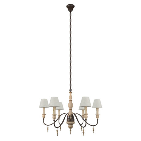 Ищете люстру, которая создаст уютную атмосферу в спальне? Country 10419 от испанского бренда Loft IT сочетает классический дизайн с практичностью. 6 ламп дают мягкий рассеянный свет, а текстильные абажуры создают комфортное освещение для отдыха. Три главных преимущества: - Регулируемая высота до 3965 мм — подберете оптимальное расположение под ваши потолки - 6 плафонов с общей мощностью 240 Вт — равномерно освещают помещение без резких теней - Текстильные абажуры белого цвета — смягчают свет и легко чистятся сухой щеткой Люстра подойдет для спальни площадью от 15 м². Диаметр 810 мм — оптимален для комнаты шириной от 3,5 метров. Модель создана для тех, кто ценит классические интерьеры с элементами прованса или скандинавского стиля. Технические характеристики: - Цоколь E14 — используете стандартные лампы-свечи мощностью до 40 Вт каждая - Арматура из металла с коричневым покрытием — не выцветает и устойчива к механическим повреждениям - Крепление на крюк — установка занимает 20 минут, инструкция в комплекте - Степень защиты IP20 — предназначена для сухих помещений - Напряжение 230В — подключается к стандартной электросети - Вес 4,9 кг — подходит для бетонных и деревянных перекрытий Требуется сборка: соединить плафоны с арматурой по инструкции. Гарантия 18 месяцев от производителя покрывает все механизмы и элементы конструкции.Отзывы
