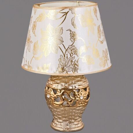Настольная лампа Reluce: керамика с золотым декором и текстильным абажуром в стиле прованс