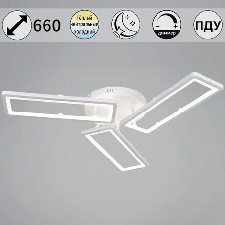 Нужен свет для всей спальни, но не хотите развешивать несколько светильников? Reluce решает эту задачу одной лампой с тремя независимыми плафонами. Направляете каждый в нужную зону — получаете равномерное освещение без темных углов. Три главных преимущества: - Три поворотных плафона — направляете свет на рабочий стол, кровать и шкаф одновременно - 84 Вт светодиоды в комплекте — не нужно докупать лампочки, работают до 50 000 часов - Диммер в комплекте — регулируете яркость от ночника до полного освещения Светильник подходит для комнат от 12 м². Диаметр 660 мм, высота всего 80 мм — не съедает пространство в помещениях с низкими потолками. Геометричный дизайн в стиле хай-тек хорошо смотрится в минималистичных интерьерах. Белый металлический корпус сочетается со светлыми стенами и потолками. Подходит для спален, гостиных, кабинетов — везде, где нужно зонировать свет без монтажа нескольких приборов. Технические характеристики: - Мощность 84 Вт — эквивалент трех обычных ламп по 60 Вт, но потребляет меньше электричества - Светодиодные лампы LED — не нагреваются, безопасны для натяжных потолков - Напряжение 220 В — подключается к стандартной проводке - Крепление на планку — монтируется за 15 минут, инструкция в комплекте - Гарантия 24 месяца — производитель из Италии отвечает за качество Требуется простая сборка — соединить плафоны с основанием. Вес 1,1 кг, выдерживает любой потолок. Металлический корпус не выгорает и легко протирается сухой тряпкой.Отзывы