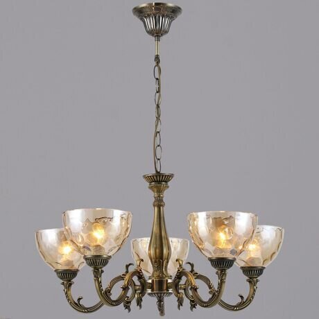 Подвесная люстра Reluce: классическая бронза с янтарным стеклом на 5 плафонов