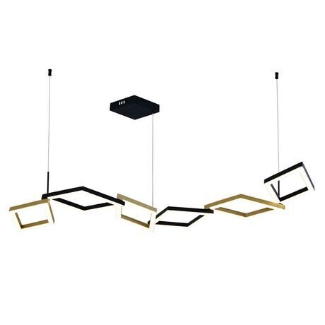 Светильник рассчитан на помещения от 20 м² с потолками от 2,7 м. Габариты 165 см в длину — займет центральную часть потолка в гостиной, студии или кухне-столовой открытой планировки.