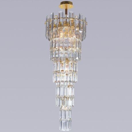 Нужна люстра для комнаты с потолками выше 3 метров? Эта каскадная модель от итальянского бренда Reluce спускается на 88 см и создает эффектный световой столб. 10 ламп равномерно освещают помещение до 25 м². Три главных преимущества: - Многоярусная конструкция — 7 уровней хрустальных подвесок рассеивают свет без резких теней - Итальянская сборка — металлическая арматура с золотым покрытием и огранённый хрусталь - Мощность 400 Вт — заменяет верхний свет и создает акцентное освещение одновременно Подходит для гостиных от 20 м² с высотой потолков от 3 м. При диаметре 35 см люстра не перегружает пространство, но остается заметным элементом интерьера. Классический дизайн сочетается с паркетом, лепниной и нейтральными оттенками стен. Материалы: прозрачный хрусталь на металлическом каркасе с золотым напылением. Подвески отражают свет и создают игру бликов на стенах и потолке. Освещение: 10 ламп с цоколем E14 (стандартный «миньон»). Используйте лампы накаливания до 40 Вт или светодиодные аналоги — они дают теплый свет и подчеркивают золотые элементы. Установка: крепление на планку. Вес 16,2 кг требует надежного бетонного перекрытия. Сборка нужна — подвески крепятся к каркасу по ярусам. Уход: протирать сухой тканью раз в месяц. Для генеральной уборки снимать подвески и мыть в мыльном растворе. Гарантия: 24 месяца от производителя.Отзывы