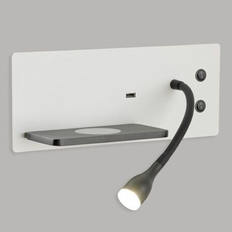 Нужна прикроватная лампа для чтения, но на тумбочке уже нет места? Светильник COZY решает сразу две задачи: встроенная полка размером 30×10 см вмещает телефон, часы и стакан воды, а гибкая лампа светит туда, куда нужно. Три главных преимущества: - Встроенный USB-порт — заряжаешь телефон прямо на полке, без лишних проводов - Гибкий светильник — направляешь свет на книгу или клавиатуру ноутбука одной рукой - Нейтральный белый свет — комфортно читать, глаза не устают даже через час Подходит для спален от 10 м². Габариты светильника 30×29 см — не выступает далеко от стены, не мешает проходу. Идеален для тех, кто читает или работает в постели, а также для детских комнат — ребенок может включить лампу самостоятельно кнопкой на корпусе. Материалы: металлический корпус — служит годами, легко протирается от пыли. Белая основа с черным плафоном — вписывается в современные и скандинавские интерьеры. Мощность 11 Вт — достаточно для чтения, но не будит спящего рядом. Светодиоды уже встроены — не придется искать лампочки в магазине. Срок службы LED-модуля до 30 000 часов — это около 10 лет при использовании по 8 часов в день. Монтаж: крепится на два самореза к стене над кроватью. Нужна розетка рядом — провод подключается к сети 220 В. Требуется сборка — займет 15 минут. Гарантия 12 месяцев от итальянского бренда Lussole LOFT.Отзывы