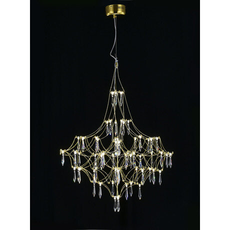 Подвесная люстра Allegria MR2642-66P-76AP: золотая каскадная конструкция с 66 встроенными LED-лампами