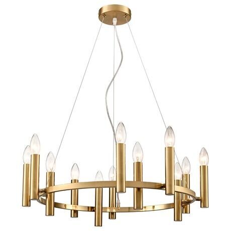 Нужна люстра, которая осветит просторную гостиную и станет акцентом интерьера? Velante 367-503-12 даёт 480 Вт суммарной мощности от 12 ламп — достаточно для помещения до 24 м². Плюс геометричная конструкция в стиле неоклассики, которая работает и как функциональный светильник, и как арт-объект. Три главных преимущества: - 12 ламп на круглом каркасе — равномерный свет без тёмных углов, каждая лампа регулируется отдельно - Диаметр 640 мм — заполняет пространство над обеденным столом или в центре гостиной, не выглядит громоздко - Высота 1200 мм — регулируется тросом, подходит для потолков от 2,7 м Люстра для неоклассических и современных интерьеров. Круглая конструкция из металла в цвете бронзы сочетается с мрамором, деревом и нейтральными тонами стен. Минимальная площадь помещения — 24 м², оптимально для гостиных, столовых или двухуровневых пространств с высокими потолками. Технические характеристики: - Цоколь E14 — используйте LED-лампы в форме свечи для экономии электроэнергии и стилизации под классические интерьеры - Напряжение 230В — стандартное подключение к сети без трансформаторов - Степень защиты IP20 — только для сухих помещений, не подходит для ванных комнат - Крепление на планку — монтаж занимает 20-30 минут, требуется сборка элементов конструкции - Вес 4 кг — надёжно держится на стандартных перекрытиях Материал арматуры: металл — не требует особого ухода, достаточно протирать сухой тканью раз в месяц. Бронзовое покрытие устойчиво к выгоранию. Гарантия 12 месяцев — производитель Velante (Италия) отвечает за качество конструкции и покрытия.Отзывы