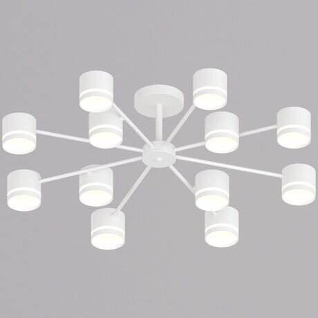 Нужно осветить большую гостиную или студию? Люстра Reluce справится с пространством до 68 м² — это стандартная трехкомнатная квартира. 12 плафонов на штангах дают 180 Вт суммарной мощности, при этом можно регулировать направление света под разные зоны. Три главных преимущества: - Гибкое зонирование — каждый из 12 плафонов поворачивается отдельно, можно выделить рабочую зону или подсветить стену - Экономия на лампах — цоколь GX53 подходит для LED-ламп, которые служат до 50 000 часов - Минималистичный дизайн — белый металл вписывается в скандинавский, современный и минималистичный интерьеры Люстра подходит для помещений от 25 м² с высотой потолков от 2,7 м. Диаметр 800 мм — оптимально для комнат шириной от 4 метров, не перегружает пространство. Подойдет для гостиных, кухонь-студий, офисов открытой планировки.Технические характеристики