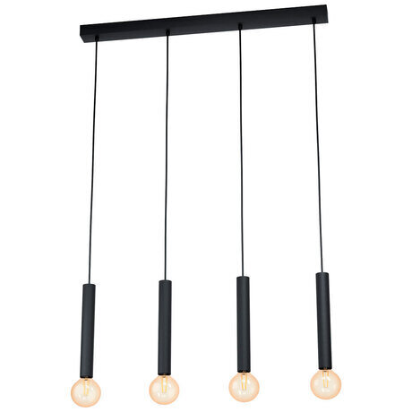Нужен светильник для кухни-гостиной или столовой? Eglo Cortenova освещает стол длиной до 2 метров — четыре лампы дают равномерный свет без темных зон. Черный металлический корпус и открытые лампы в винтажном стиле подходят для лофта, сканди и минимализма. Три причины выбрать этот светильник: - Готов к установке — не требует сборки, крепится к потолку за 15 минут - Регулируемая высота — подвесы можно укоротить под любой потолок - Экономия на лампах — подходят обычные лампы E27, которые продаются в любом магазине Светильник создан для помещений от 12 м². Подвесная планка длиной 88 см вытянутой формы — повторяет силуэт обеденного или рабочего стола. Четыре плафона-цилиндра из черного металла свисают на тросах, создавая графичную композицию. Подходит для семей с детьми и владельцев домашних животных — светильник висит высоко, плафоны не нагреваются. В квартире-студии разделит зону кухни и гостиной. В загородном доме осветит обеденную группу или барную стойку. Вес 3,36 кг — выдержит любой бетонный или деревянный потолок Производитель Eglo — австрийская компания с 50-летней историей, даёт гарантию на всю продукцию Коллекция Cortenova — серия светильников в индустриальном стиле, которые сочетаются между собой Тип цоколя E27 — используйте любые лампы: LED для экономии, ретро-лампы с видимой нитью для атмосферы или обычные для яркого света Уход простой — протирайте плафоны сухой тряпкой раз в месяц. Металл не выгорает и не окисляется.Отзывы