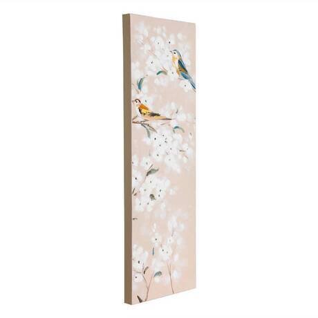 Подойдет для квартир в скандинавском стиле и минималистичных интерьеров. Изображение птиц на цветущих ветках добавляет природный мотив без перегрузки пространства деталями.
