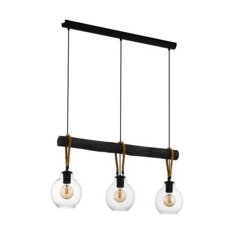 Люстра EGLO Roding: три стеклянных плафона на деревянной планке для кухни или столовой
