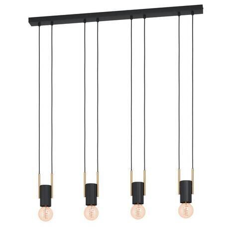 Подвесной светильник EGLO Bitachito: четыре лампы на черных подвесах для освещения стола или барной стойки