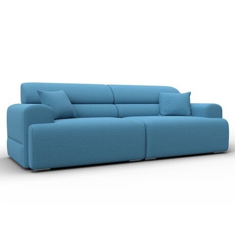 Диван рассчитан на гостиную площадью от 20 м². Длина дивана требует просторного помещения — учитывайте это при планировке. Подойдет для семей с детьми и тех, кто часто принимает гостей. Одновременно размещает 4 человека. Голубой цвет сочетается с современными и скандинавскими интерьерами. Диван без механизма трансформации — это модель для сидения, не для сна. Широкие подлокотники служат дополнительной опорой, на них можно поставить чашку или положить телефон. В комплекте 2 декоративные подушки.Конструкция и материалы